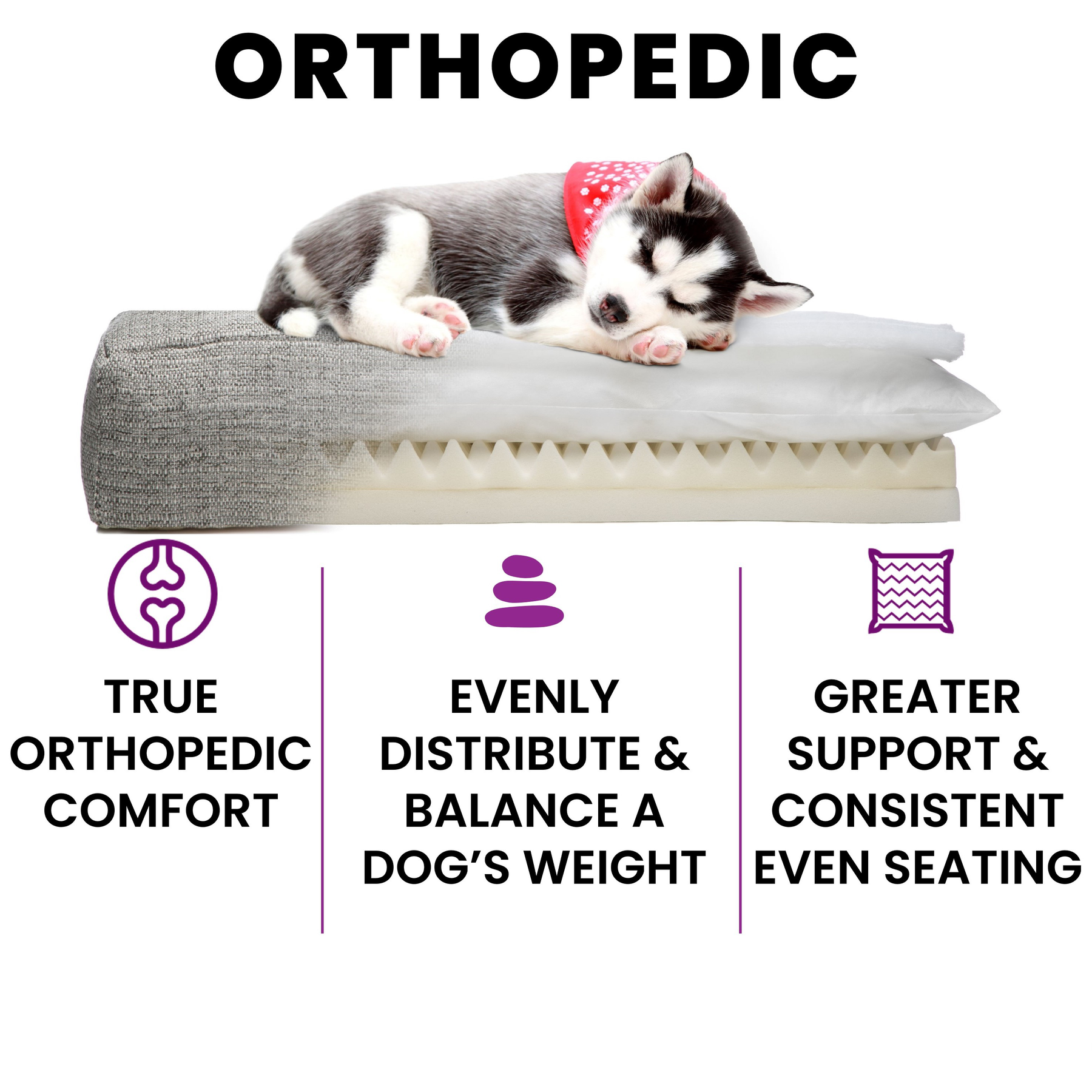 Crafted In The USA For Perfection, Our Furniture Quality Beds Are TRUE Orthopedic, Odor Resistant, 100% Chemical Free, With Removable And Machine Washable Cushions. Helping Your Dog With Improved Health And Mobility. Elevate Your Dog Today!