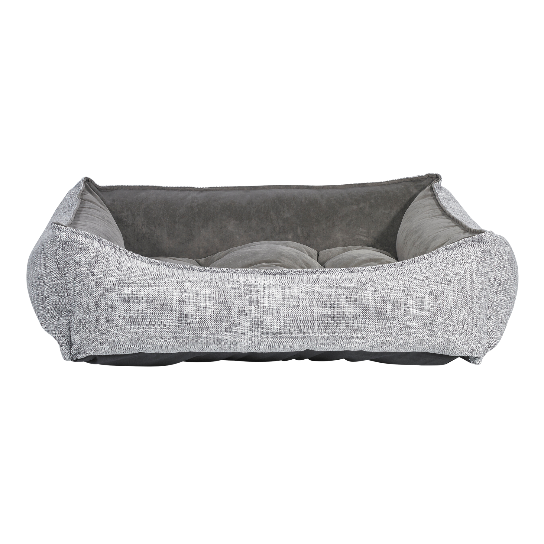 Easy Entry Scooped Design! Stylish Two-Tone Fabric Combination And European Style "Pinched Edge" Trim Detail. Removable Tufted Center Cushion. Generous Sizing Maximizes Sleeping Area. Great Design For Older Or Arthritic Dogs.